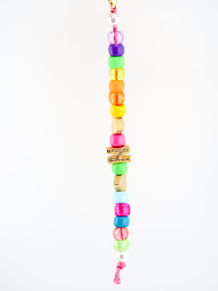 The Initial Festival Charm is the ultimate customizable summer accent. Featuring a beaded loop and vertical dangle in radiant colors and golden accents, this piece lets you add an initial to make it personalized.
