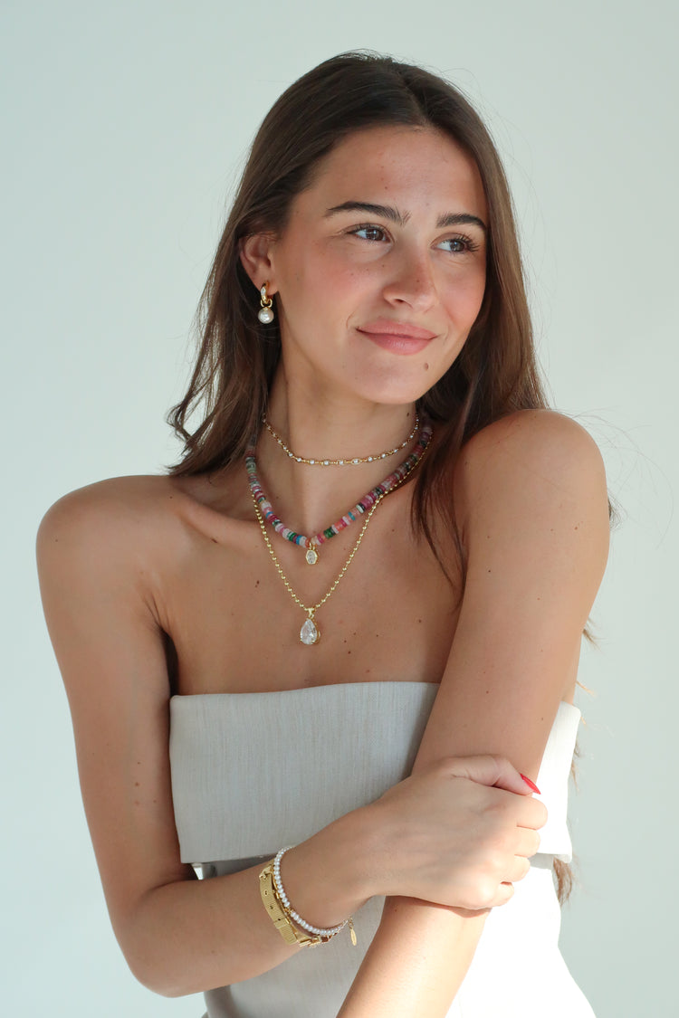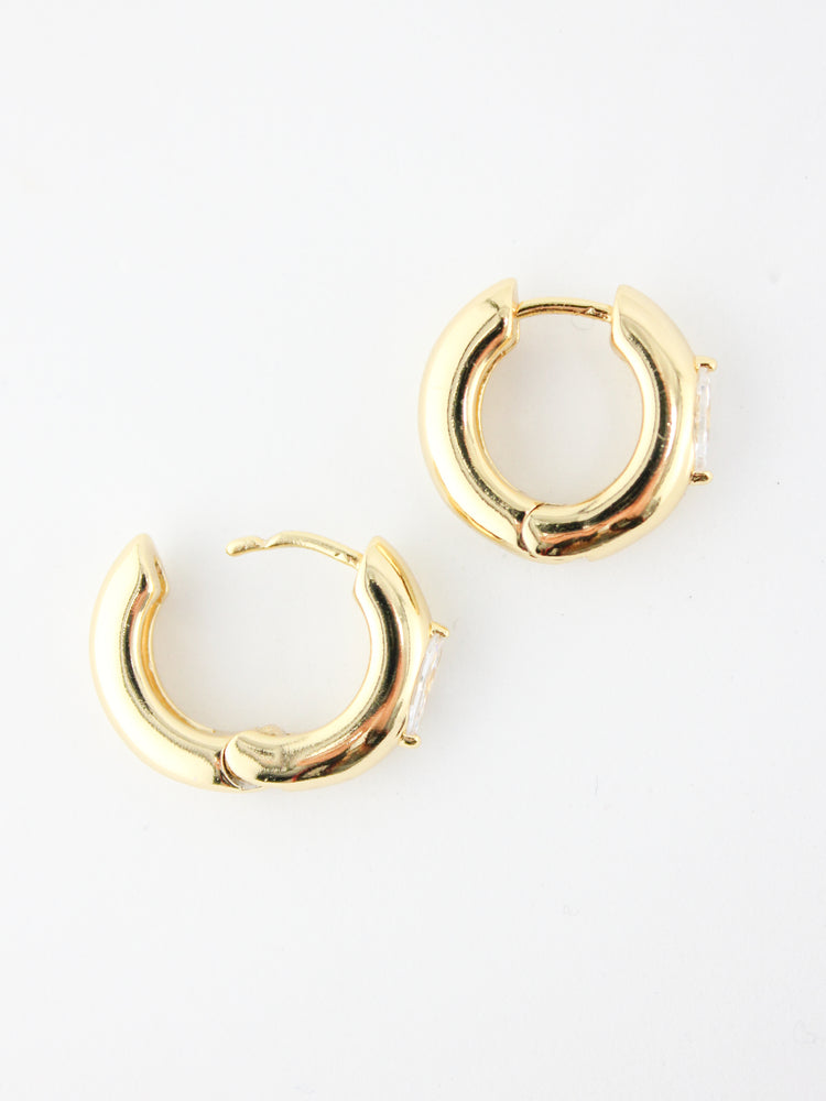 Materials: gold‑plated huggies, marquise CZ, pearl drop