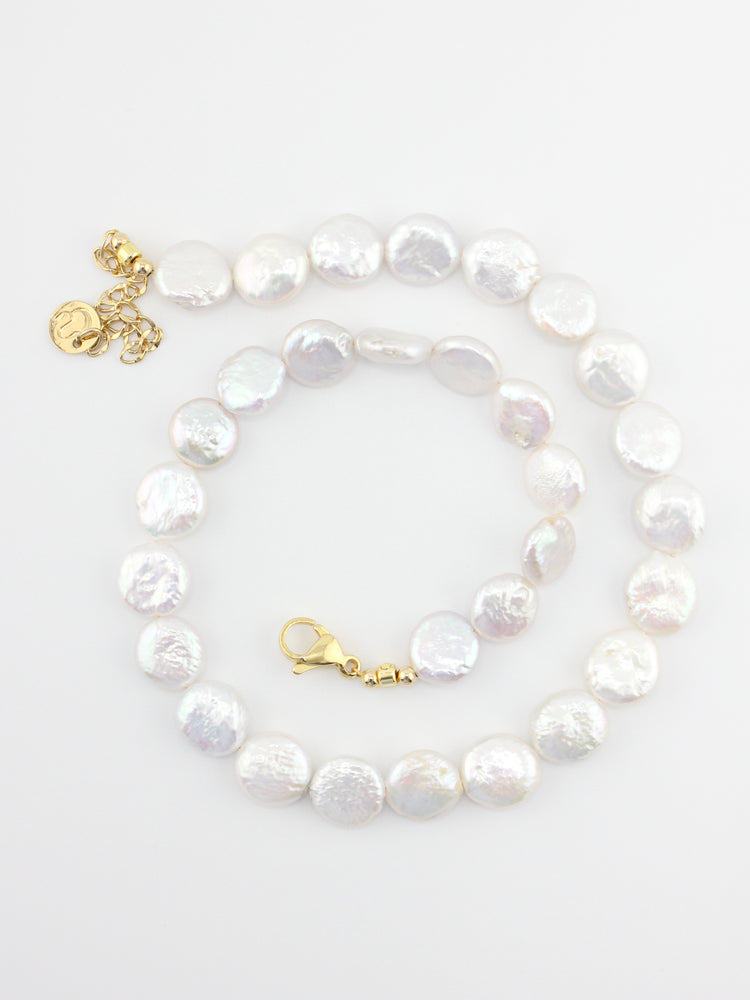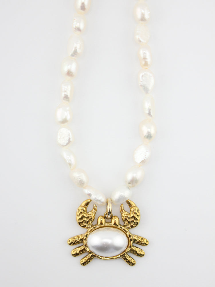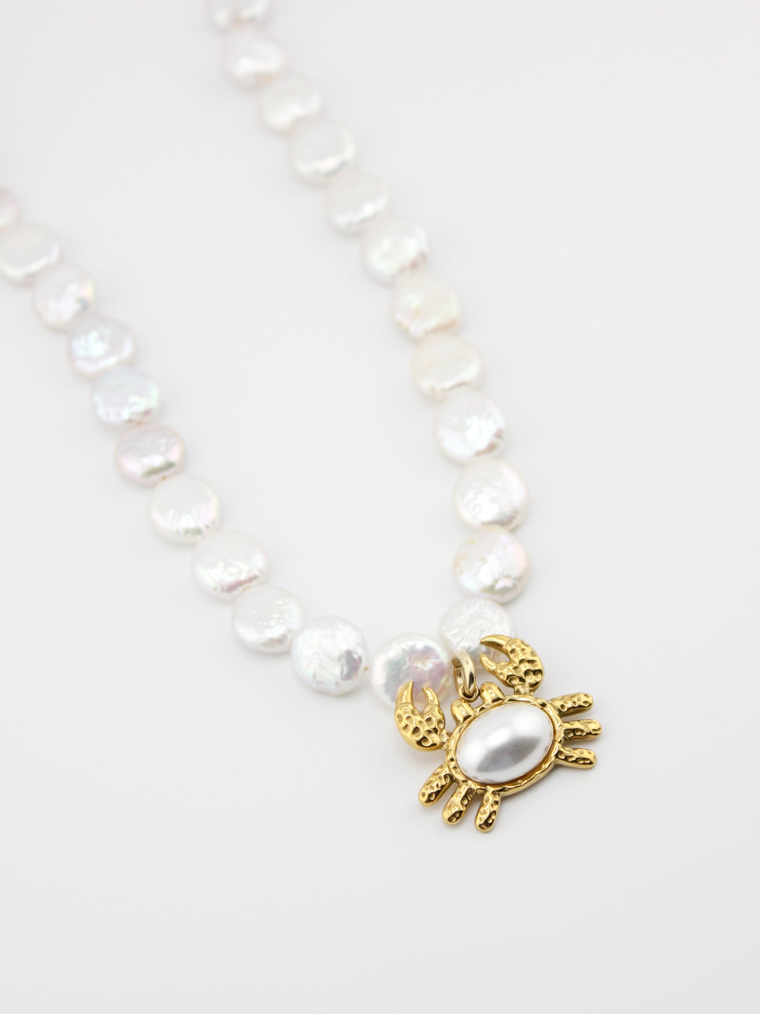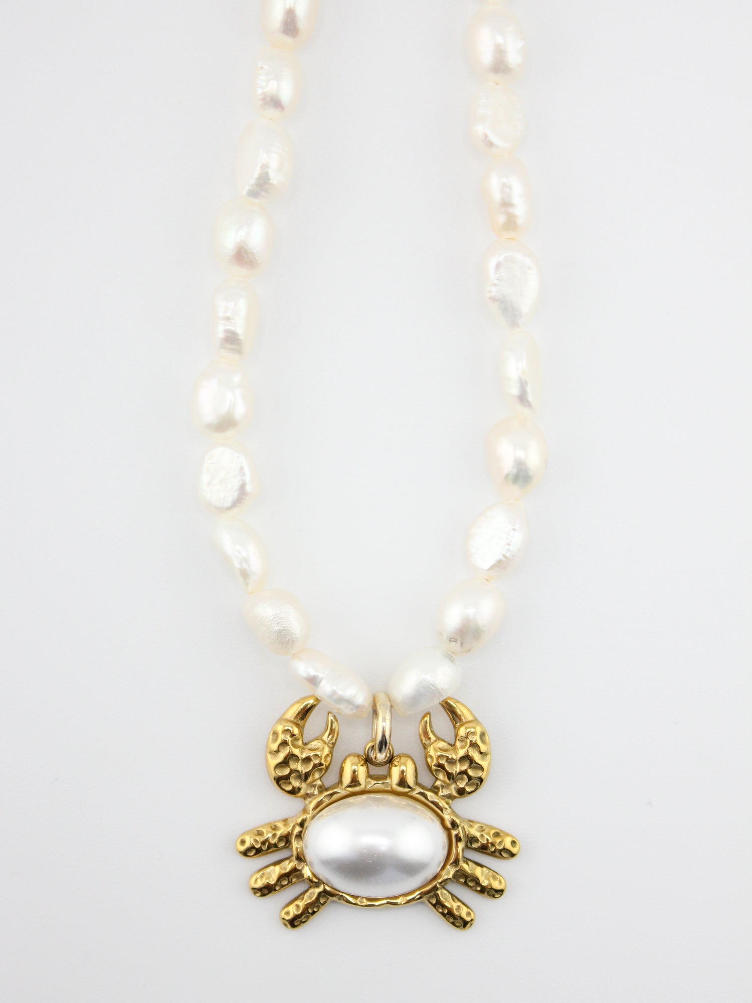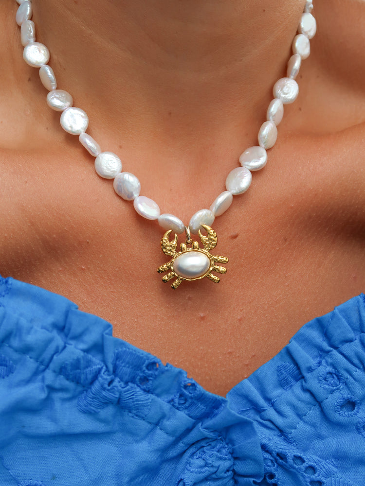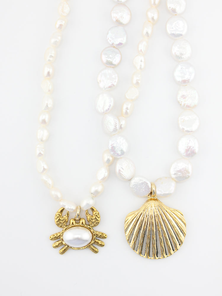 The Marina Mix & Match Necklace invites you to style your own story. Featuring a 14" pearl base, choose between luminous nugget pearls or sleek flat pearls and you can pair with two interchangeable ocean-inspired charms: a radiant gold shell and a pearl-accented gold crab. Effortlessly elegant, playfully personal.