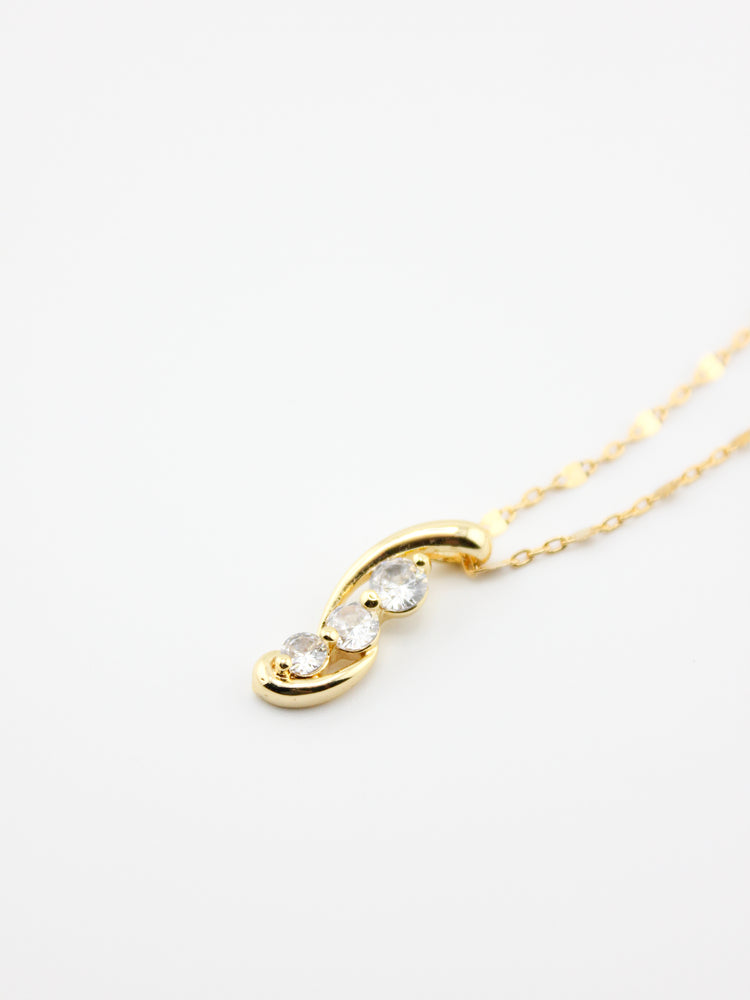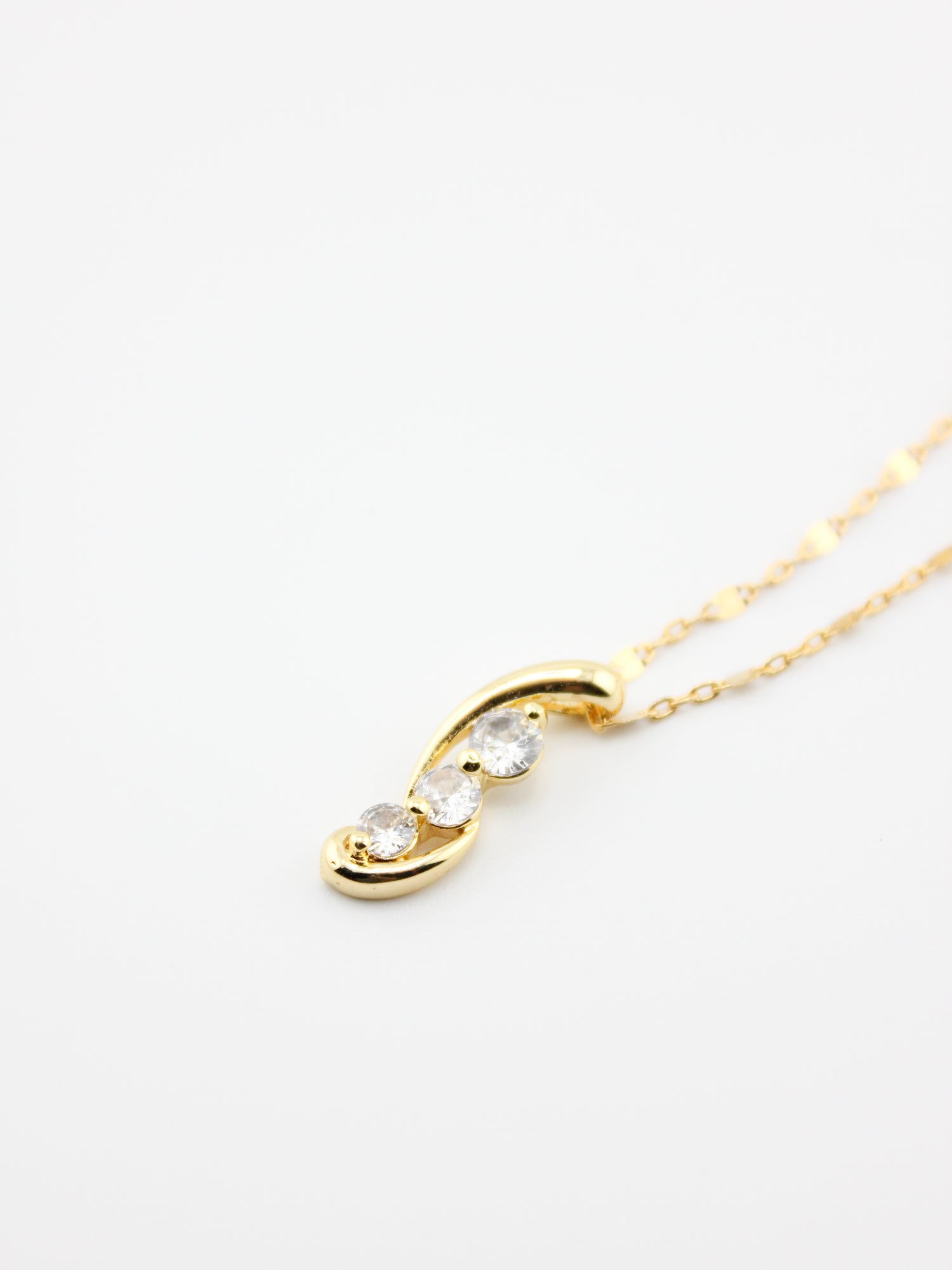 Materials: hammered gold‑tone chain, triple CZ curved pendant